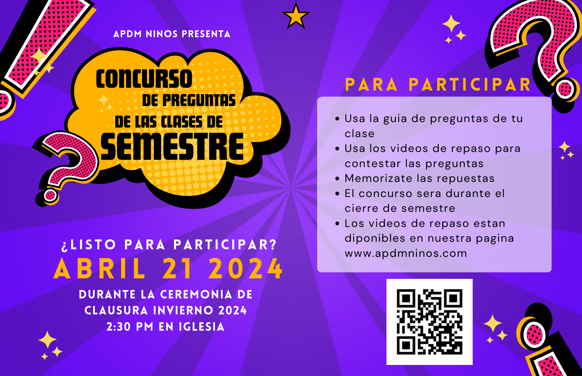 15 Preguntas de la Guia de Preguntas seran parte del concurso.