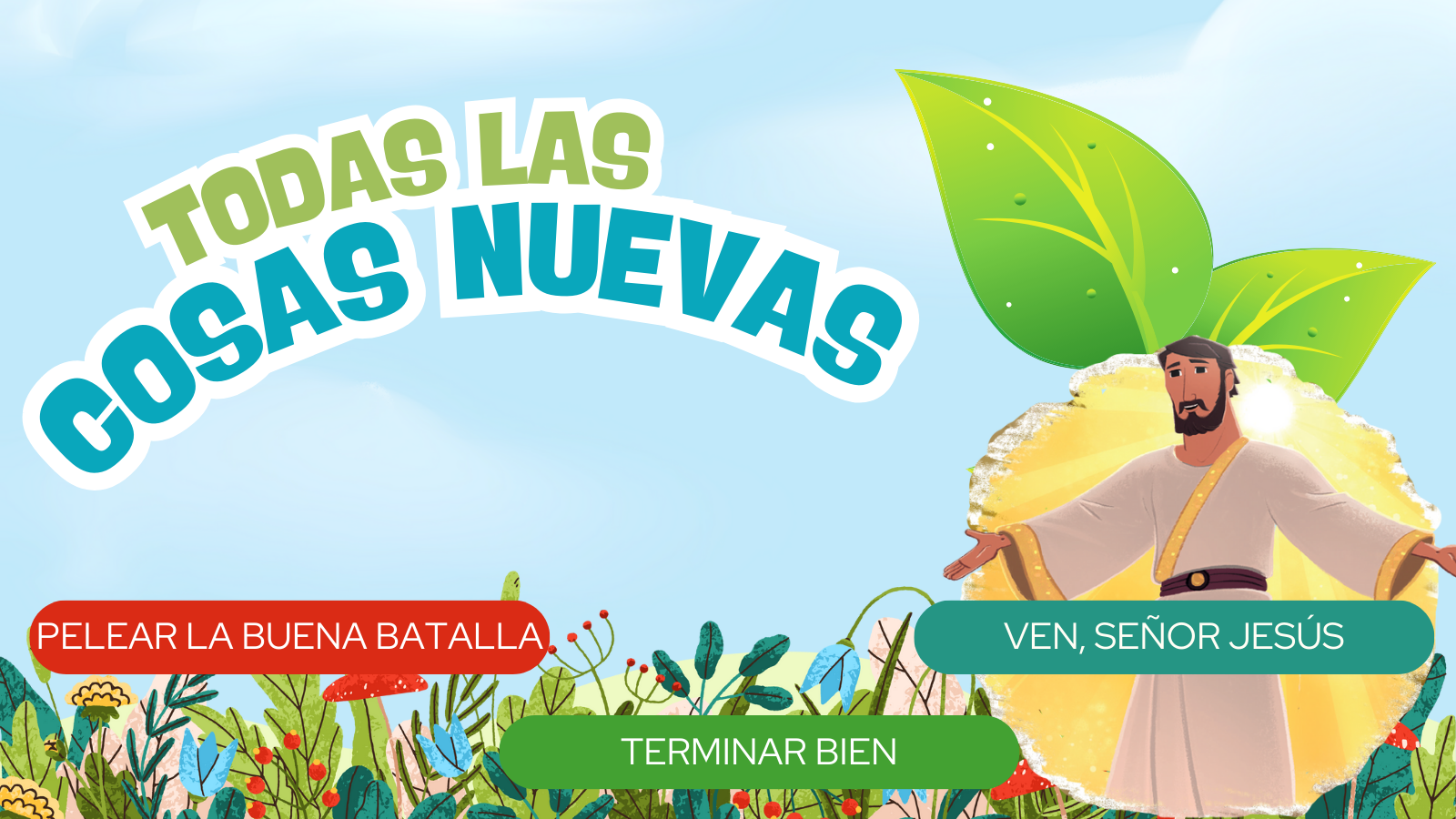 Todas las cosas nuevas ayuda a los niños a descubrir cómo Pablo animó a los creyentes a crecer en su fe y a poner su esperanza en la eternidad con Jesús. A lo largo de su ministerio, Pablo alentó a los creyentes a mantenerse firmes en la verdad. Juan, uno de los discípulos de Jesús, compartió más del plan de Dios de enviar a Jesús nuevamente. Cuando Jesús regrese, deshará todo lo que fue arruinado por el pecado y hará que todo sea nuevo y correcto para siempre.